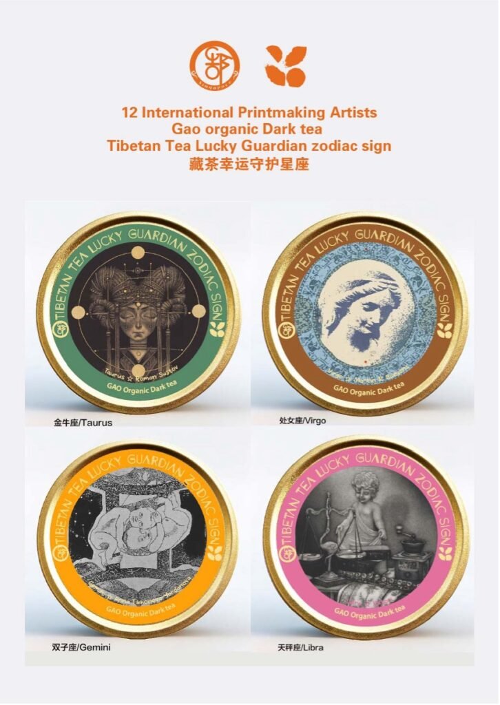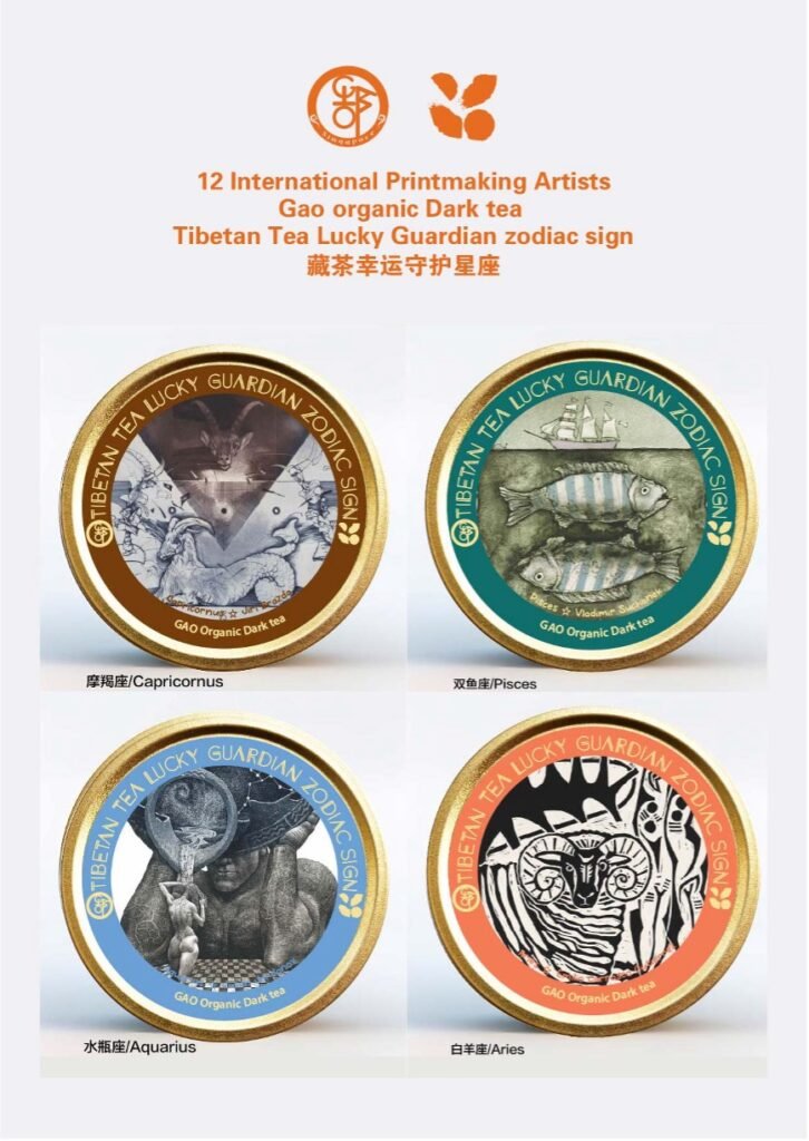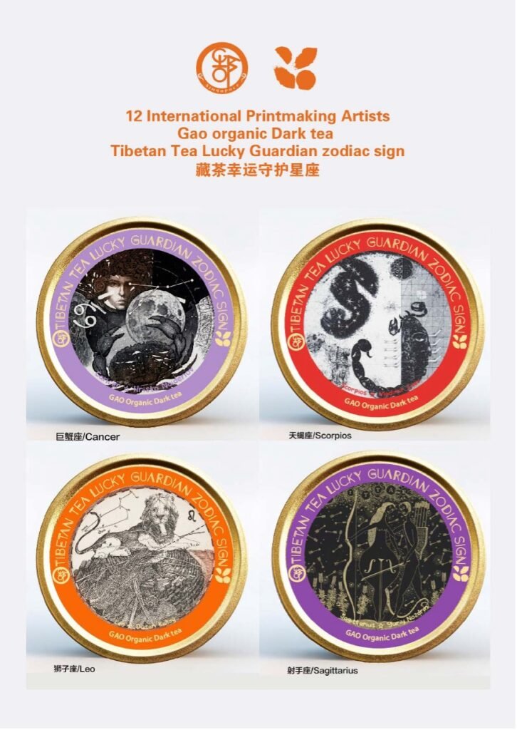 新加坡郜(GAO)与中国艺森文化12位国际版画领军艺术家联名设计“藏茶幸运守护星座”系列,星座是人类心灵之眼,并与灵性世界息息相通; 它是人类个体吉祥安康的守护神,每个星座专属的幸运色带给您好运连绵。我们采用1300米高山茶园制作的有机藏茶,属于国家非物质文化遗产,三十二道传统工艺,历时13个月组合发酵,不打农药。来自四川雅安世界茶文化发源地、大熊猫故乡。我们是黑茶的鼻祖藏茶原产地原始森林保护者,它的神奇功效补充维他命、增加免疫力、安神安眠等。